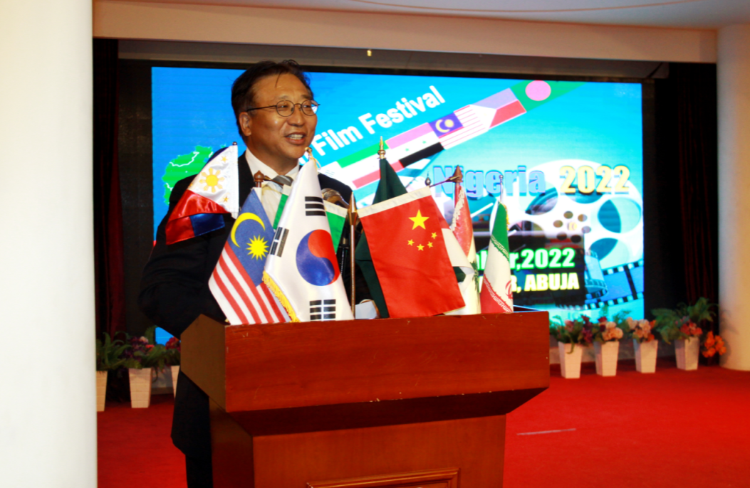 阿里彪司长宣读了贾菲亚常秘的书面讲话。贾菲亚说,在尼日利亚举办亚洲电影节意义重大,它为亚洲国家电影界人士提供了绝好的机会和平台,向世界展示他们讲故事和拍电影的技能和水平。同时,它也是文化产业中展示多元文化的一个重要部分,是进一步加强尼日利亚与中国等亚洲各国在电影制作领域合作的又一次机会。亚洲电影特别是中国功夫电影很受尼日利亚观众喜爱,不少青少年将一些电影明星如成龙、李小龙、李连杰等作为崇拜的偶像,通过电影学习传统功夫,对尼日利亚社会产生了影响。尼日利亚电影业“瑙莱坞”闻名世界,电影产量在世界上名列前三,近年来与中国及亚洲国家在电影业合作方面取得了很大进展,如2019年,尼中联手制作了影片《中国30天》。尼中两国还通过“一带一路”倡议加强电影业合作,如2022年在中国江苏省举办非洲电影节期间,两国规划了加强电影产业合作蓝图,共同努力以促进文化交流。