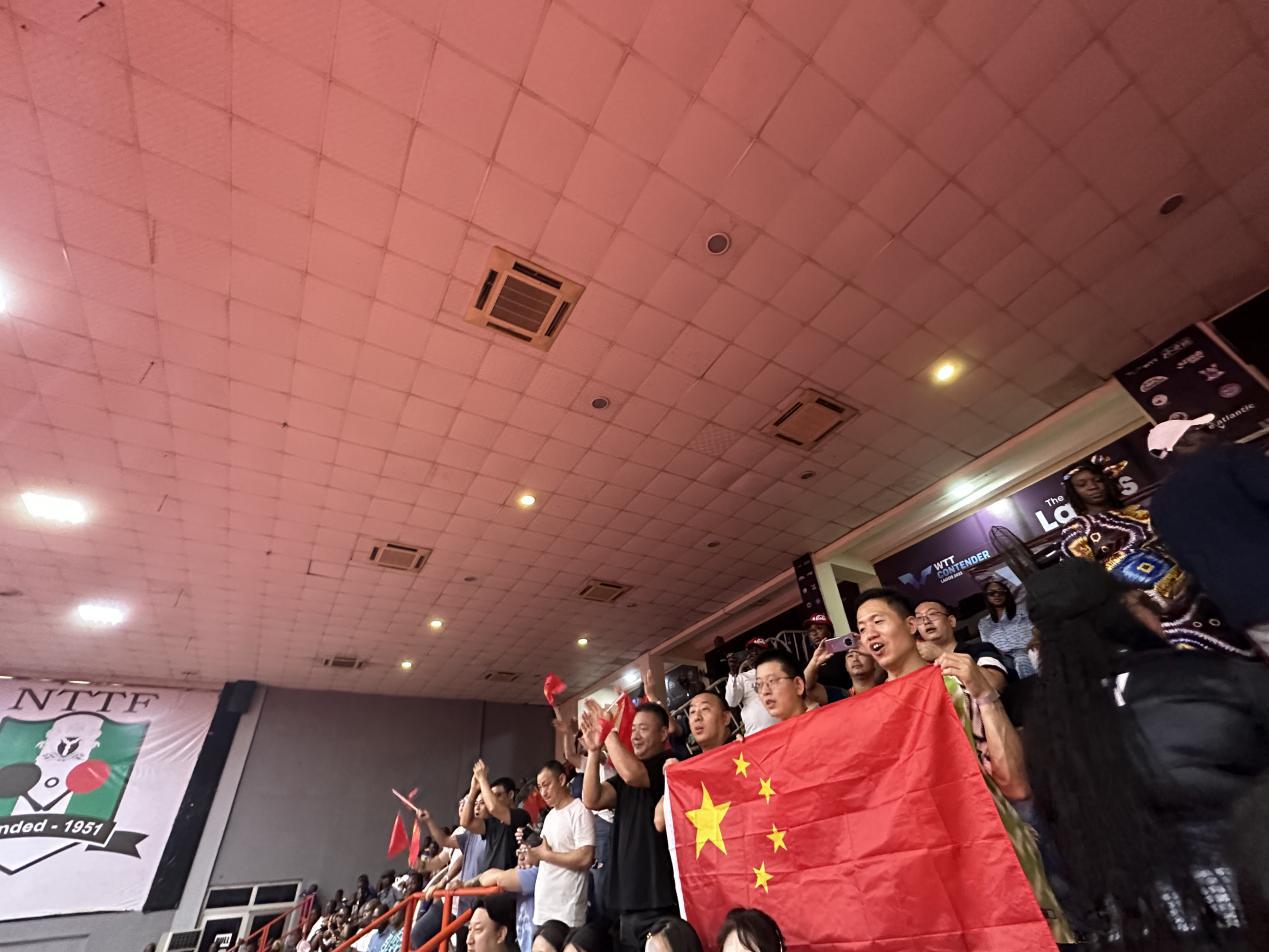 比赛气氛热烈,众多中国侨胞在现场为中国健儿摇旗呐喊、加油助威。金明煜副总领事带领馆员前去现场观赛,并在赛后代表崔建春大使、严宇清总领事向中国队全体队员、教练员致以最衷心的祝贺和最诚挚的慰问。