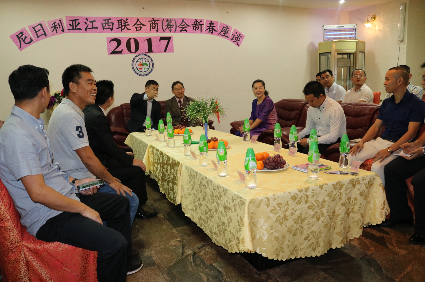 1月14日尼日利亚江西联合商(筹)会新春座谈会、暨江西师范大学非洲巡演团欢迎会在拉各斯帝国酒店隆重举行,拉各斯总领馆巢小良总领事及毛朝霞领事到会参加。