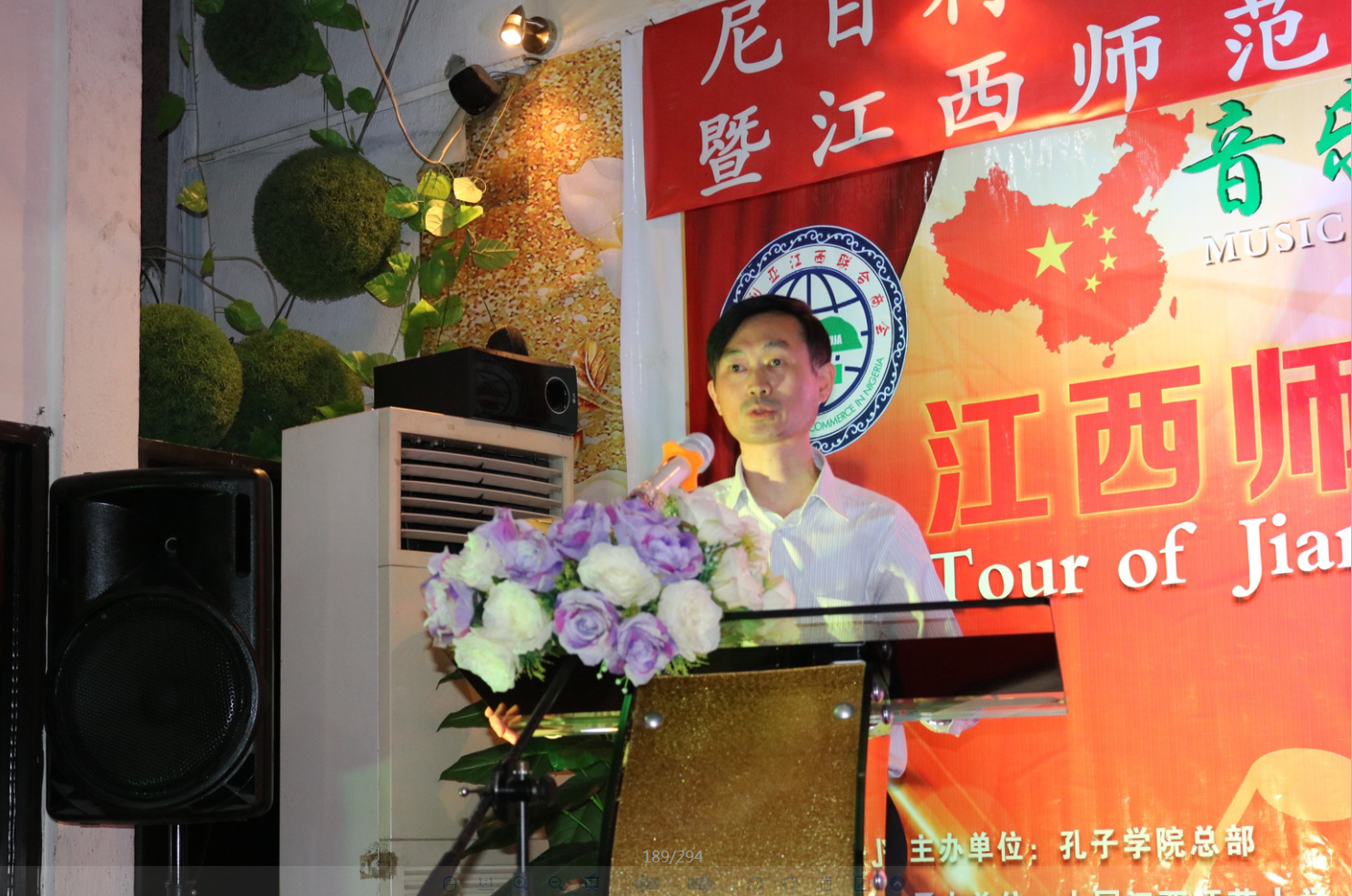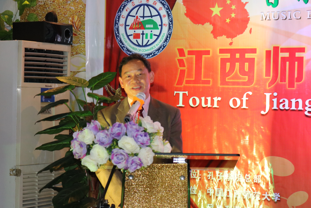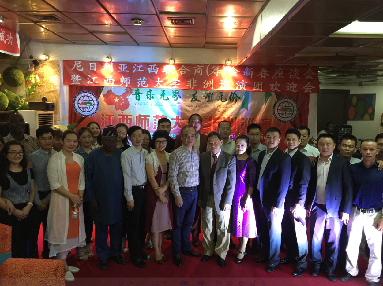 同时以“音乐无界,友谊无价”为主题的江西师范大学非洲巡演活动也在拉各斯大学孔子学院拉开序幕。此次活动由国家汉办主办,江西师范大学、拉各斯大学孔子学院承办。演出团一行十余人,均为师大优秀教师及艺术家,初到拉各斯便受到总领馆及江西联合商(筹)会的热情接待。此次欢迎会也是拉各斯总领馆及尼国江西乡亲对祖国远道而来慰问尼国华侨的艺术家们的一份热情回馈。