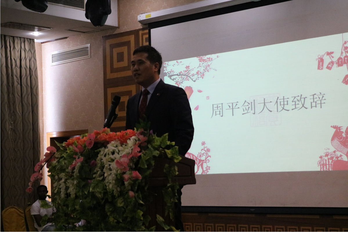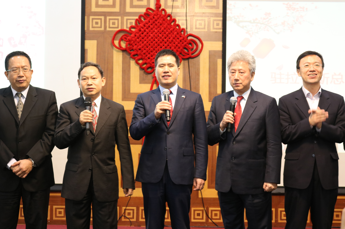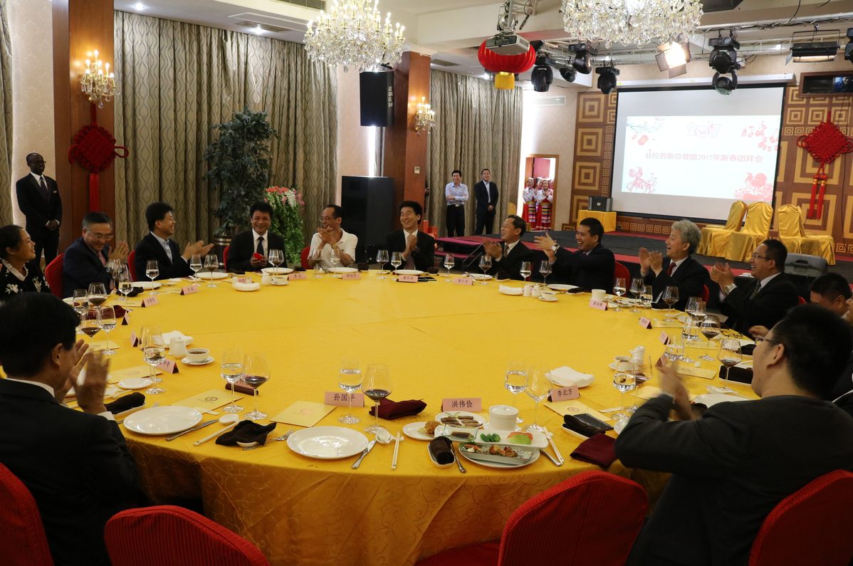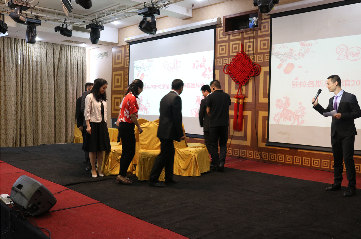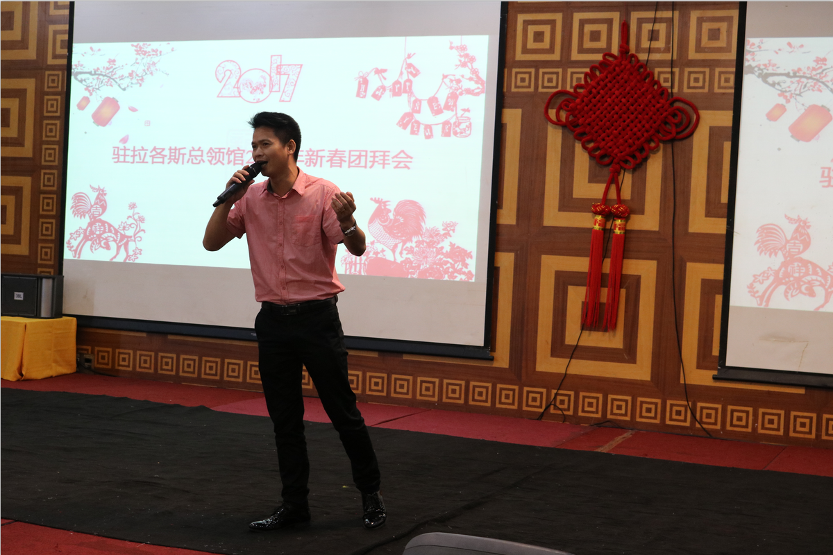 小年刚过、除夕临近,驻尼日利亚大使馆周平剑大使及党英参赞一行不辞辛劳莅临拉各斯领区,与驻拉各斯总领馆巢小良总领事及管仲奇副总领事等其他使领馆人员一同参加了此次拉各斯领区华人华侨新春团拜会。