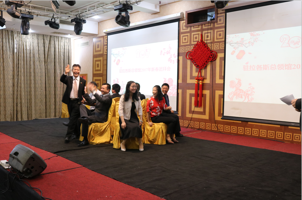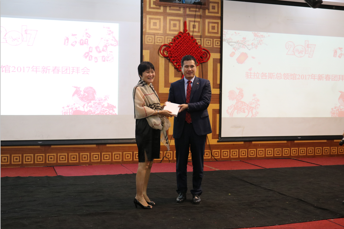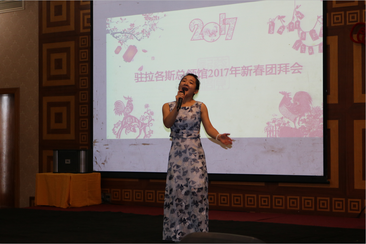 驻拉各斯领区的各界知名华人侨团侨领及部分受邀华人公司代表近200人参与了此次团拜会,大家均对使领馆领导同时参加拉各斯团拜会表达了热烈的欢迎,同时周大使、巢总领事也在现场发表了热情洋溢的新春祝福与祝酒词,由总领馆妇女小组、七星农场艺术团、孔子学院教师、妇女筹备会及江西商筹会奉献的精彩表演,更是让现场不断响起热烈的掌声!