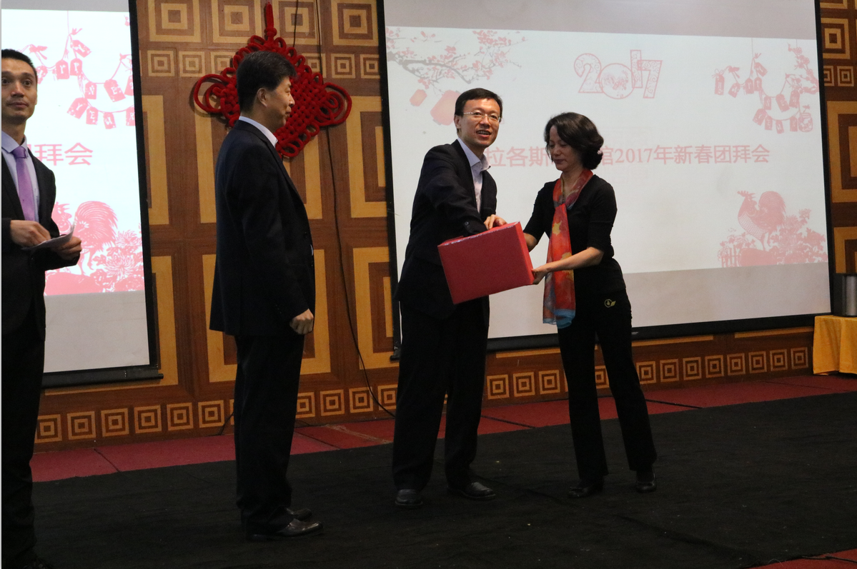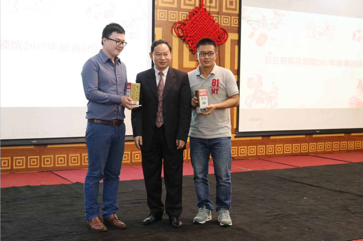 总领事为抽奖二等奖颁奖