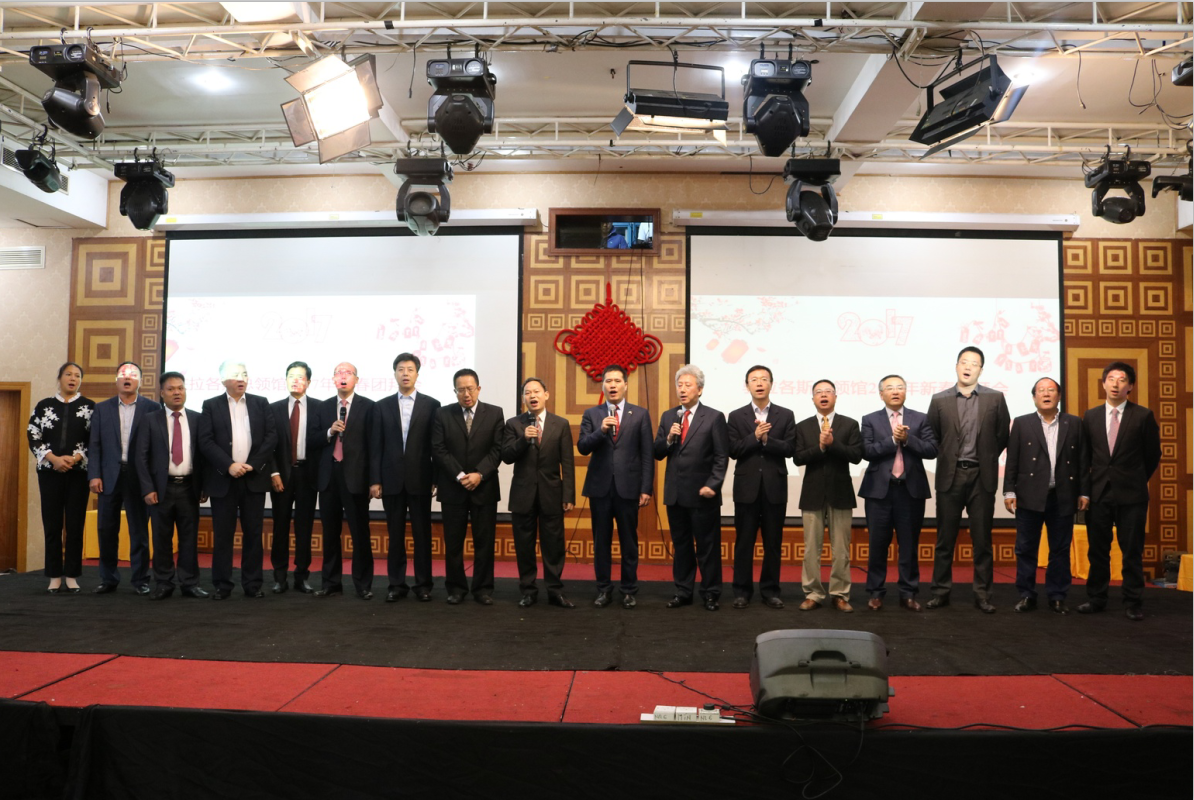 大使总领事与侨领合唱歌唱祖国