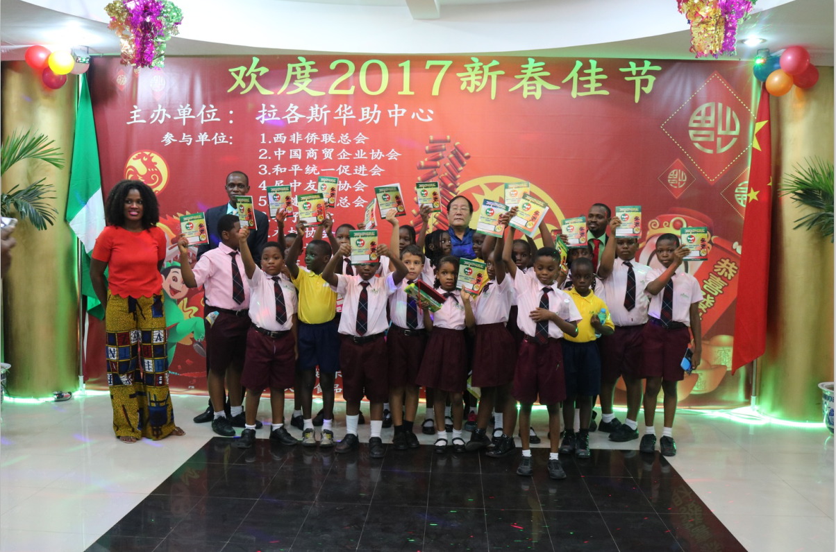 现场还有有两桌特别的小嘉宾,那就是由维护工业园黄育真女士及其婆婆Irmgard williams女士创建管理的Ijamido孤儿院的尼国小朋友们、以及中尼联姻家庭中的混血小朋友们,可爱的小朋友的加入,也让现场更像一个大的家庭聚会,期间也由拉各斯领区华人父母官巢总领事作为长辈的代表为现场所有小朋友发送最具中国传统文化特色的“压岁钱”、并祝福所有小朋友快乐健康成长。