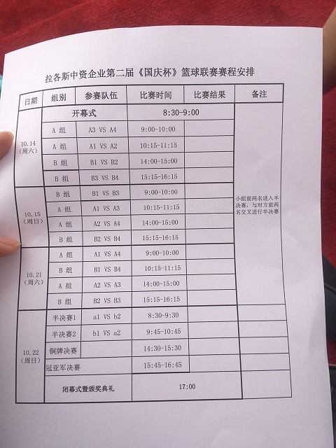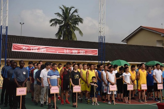 当地时间14日上午尼日利亚拉各斯第二届中资企业“国庆杯”篮球联赛在拉各斯尼铁大院拉开帷幕。