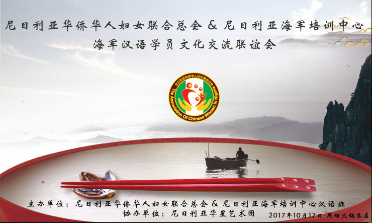 10月17日上午,由尼日利亚华侨华人妇女联合总会和尼日利亚海军培训中心汉语学院主办,尼日利亚华星艺术团协办的文化交流联谊会在拉各斯周姐火锅总店举行。