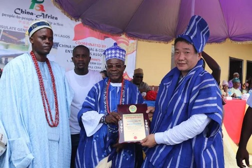 土皇OBA GANIYU ADEGBESAN, ONISE OF ISE LAND亲自给倪孟晓会长颁发酋长证书