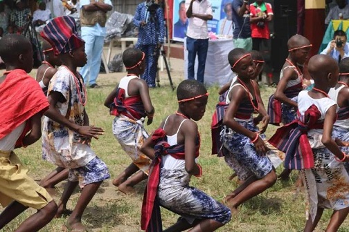 伊塞小学学生现场表演当地歌舞以表达对“中非民间友好行动”的感激之情