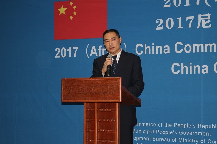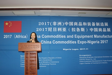 商务部外贸发展局副局长金虹也在开幕式上致辞,她指出,中非关系源远流长,传统友谊历久弥新。2015年,中国国家主席习近平出席中非合作论坛约翰内斯堡峰会,将中非关系提升为全面战略合作伙伴关系,确定“五大支柱”,推出“十大合作计划”,描绘了中非合作的宏伟蓝图。在高水平政治关系引领下,中非经贸关系保持平稳较快发展。2013年,中非贸易额首次突破2000亿美元。2012-2016年,中国连续5年成为非洲第一大贸易伙伴国。据中国海关统计,2017年1-9月,中非贸易总额达1256.4亿美元,同比增长14.5%,超出中国同期外贸总体增幅2.8个百分点。 其中,非洲对中国出口总额为555.8亿美元,增长34.9%,增幅尤为突出。中非经贸关系蓬勃发展,不仅促进了双方经济社会发展,也给中非人民带来了实实在在的利益,为中非传统友谊增添了活力和动力。 自2005年两国建立战略伙伴关系以来,中尼经贸合作蓬勃发展,合作规模不断扩大,合作领域逐步拓宽,合作方式更加多样。尼日利亚已成为中国在非洲的主要贸易伙伴和投资目的地之一。 莱基自由区和奥贡自由区正吸引越来越多的中国企业落户投产。2016年,中尼贸易额达106.64亿美元,保持较快增长。此次举办中国商品和装备制造展,旨在展示更多适销对路的优质中国产品,进一步促进双边经贸发展。本届展会共邀请了来自重庆、广东、山东、浙江、福建等省市的100多家品牌企业参展,设标准摊位180个,特装区域200平米,展会总面积约5000平方米。我相信,在中尼两国政府和企业界的共同努力和大力支持下,2017年(非洲)中国商品和装备制造展将成为展示的平台,友谊的桥梁,交流的窗口,进一步密切中尼企业间的联系,促进双方的交流合作,推动中尼全方位合作不断迈上新台阶。我也在此预祝“2017(非洲)中国商品和装备制造展&2017(尼日利亚)拉各斯中国商品展”取得圆满成功!