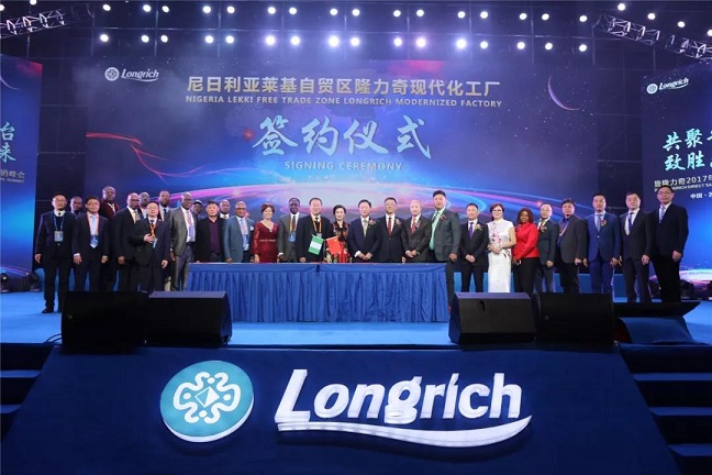 12月17日,尼日利亚驻上海领事馆总领事安德森·恩·马杜拜科、莱基自贸区开发公司董事长戴比瑞先生、莱基自贸区开发公司总经理丁永华先生、莱基自贸区开发公司副总经理易卜拉欣先生、莱基自贸区开发公司工程总监黄习工先生、莱基全球公司总经理绍达德博士等一行莅临隆力奇参观考察,并于隆力奇2017年度直销峰会上现场签订了战略合作协议,将在莱基自贸区内建造四万平米生产基地,成为“一带一路”沿线首个人工智能化工厂,用于生产保健品、化妆品、洗涤用品等,为隆力奇在尼日利亚、南非、喀麦隆、刚果等非洲分公司提供全面的大供应链、产品保障和通关等整体服务。