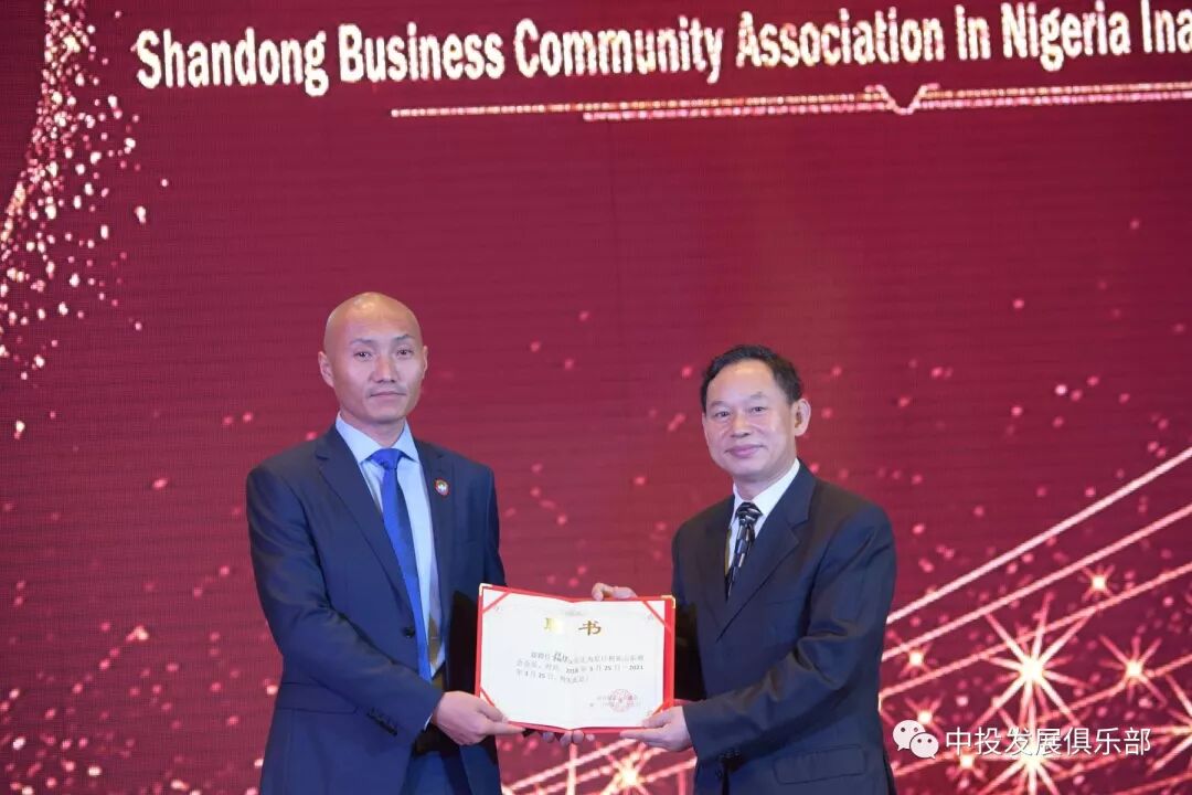 驻拉各斯总领馆总领事巢小良为尼日利亚山东商会会长杨继江颁发聘书