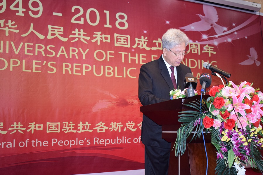 总领事巢小良代表驻拉各斯总领馆向与会的中尼来宾致以诚挚问候,他在致辞中表示,69年风雨历程、69年沧桑巨变,中国人民在中国共产党的带领下艰苦奋斗,努力探索出了一条适合自身国情的发展道路,经济建设和社会发展取得了重大成就。