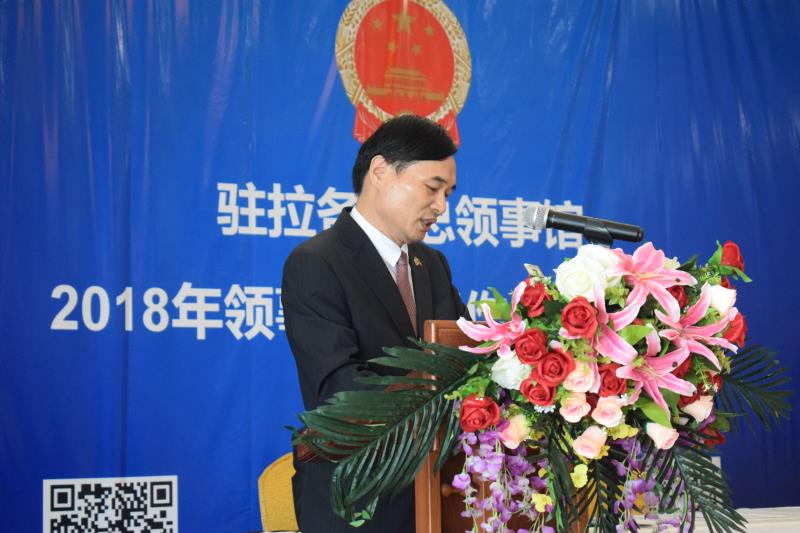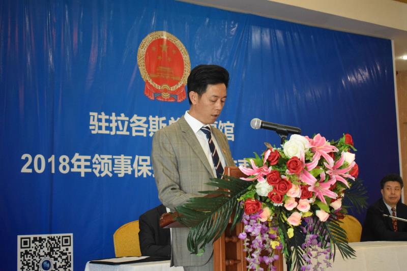 驻拉各斯总领馆经商室刘君胜参赞在致辞中表示,驻拉各斯总领馆将秉持“共商共建共享”原则,官民并举,积极做好领区领保工作,为中国公民和侨胞在尼平安学习工作生活,为促进中尼各领域友好互利合作营造安全、稳定、和谐的大环境。刘君胜参赞对2019年领保工作提出了具体要求,希望旅尼侨胞和中资机构积极参与,协助驻拉各斯总领馆做好预防性领保宣传工作,共筑安全、和谐、平安的美好乐园。