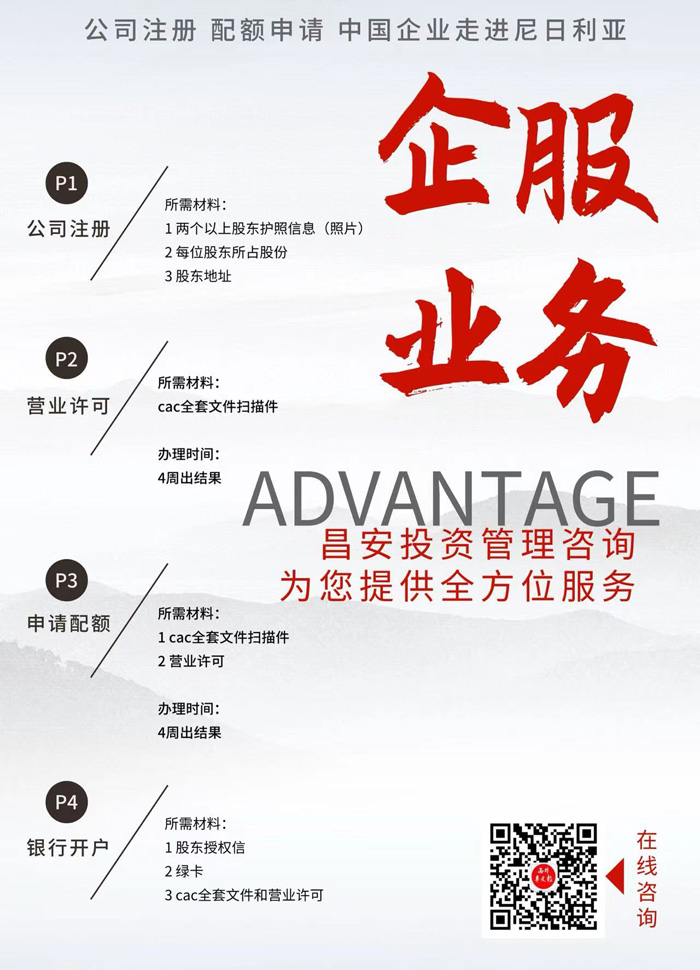 公司注册、配额申请 ;机场接送、警员安保;物流、超市、宾馆、饭店;签证、绿卡、机票;代理记账、商标注册;医疗等。